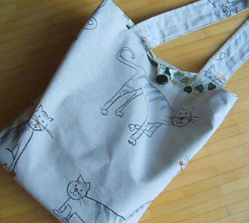 Tasche aus naturfarbenem Leinen mit Katzen und Mäusen